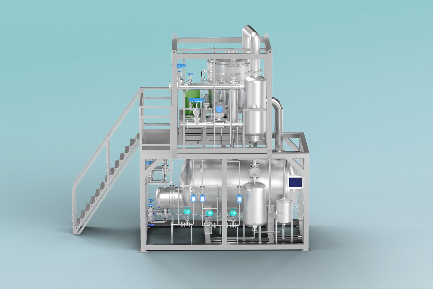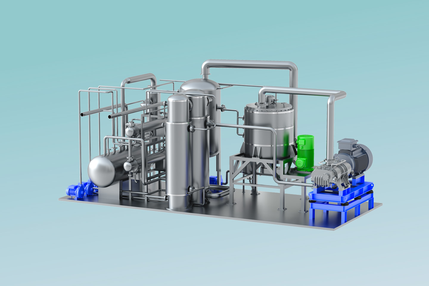 了解詳情MVR熱泵精餾系統(tǒng)以高效旋轉(zhuǎn)精餾床為基礎(chǔ),利用離心力場代替重力場,強化相與相之間的相對速度和相互接觸,通過強化傳質(zhì)傳熱來提高分離效率縮小設(shè)備體積。 通過在系統(tǒng)中引入適用于小流量、大壓比的螺桿式蒸汽壓縮機,即可實現(xiàn)MVR循環(huán)熱泵精餾。